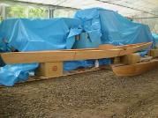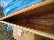 スターン側 開きを持たせるため入れた合板もエポキシでそのまま接着してしまいます |