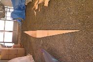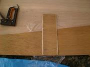 全長の板にするため、接着する部分をぴったりあわせた後、合板の切れ端をエポキシ接着剤で接着します 接着のための板は断面を斜めに削り、上面がなめらかになるようにしています |