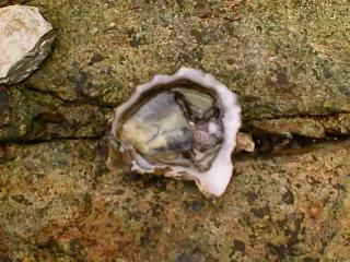 坂越の湾の入り口の磯のはカキがびっしり。坂越はカキの産地とのこと。湾内にはカキの養殖いけすがたくさんあった。