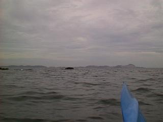 河口の防波堤を抜けて瀬戸内海へと漕ぎ出しました。防波堤までは波もなくおだやかだったが。