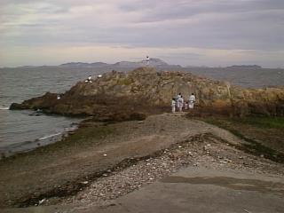 赤穂御崎手前には海水浴場とキャンプ場があり、結構沢山の人が遊んでいた。ここで、シーカヤッカー一人に出会う。家島諸島へわたるのにいい場所を聞くと、やはりこの辺が一番近いとのこと。