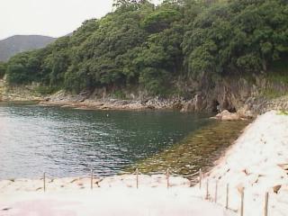 この先、室津の一番内側の入り江は大浦海岸という砂利浜で、シーカヤックのスクールなどによく使われている。