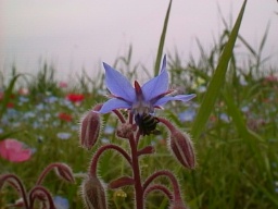 カモミールをはじめ、ボリジなどのハーブ、ポピーやヒメキンギョソウ